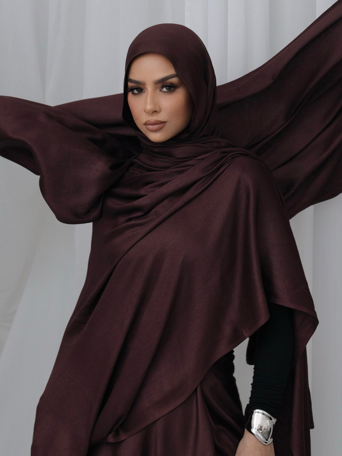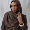Introducing our luxurious sunset burgundy hijab, a perfect blend of style and comfort. Crafted from premium silk viscose!